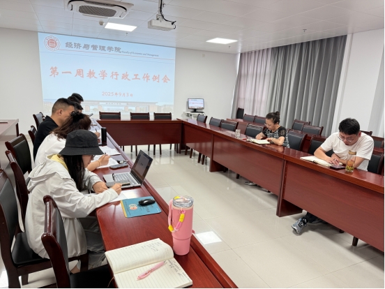2025 年 9月 3 日下午,437必赢会员中心在行政楼725会议室召开第一周教学行政工作例会。院长吴玲,院长助理叶赵强,实训室主任李健及各教研室主任参会,会议由吴玲院长主持。