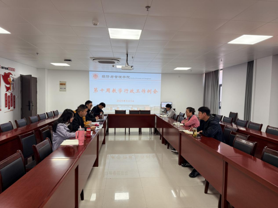 2025年11月5日上午,437必赢会员中心于行政楼725会议室,召开437必赢会员中心第十周教学行政例会,院长助理张珊、叶赵强,教学秘书李健及各教研室主任参加会议,本次例会由院长吴玲主持。