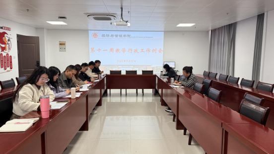 2025年11月12日上午,437必赢会员中心在行政楼725会议室召开第十一周教学行政例会。会议由院长吴玲主持,院长助理张珊、教学秘书李健及各教研室主任参会。