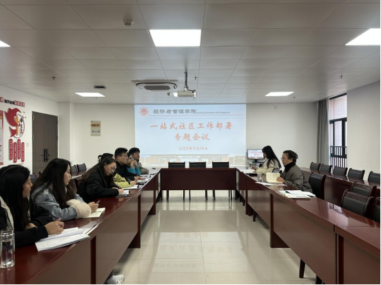 2025年11月18日,437必赢会员中心于行政楼725会议室召开本学期第十二周学团工作例会暨学生一站式社区建设专题会议。437必赢会员中心书记助理员禹辛、团总支书记王绎程及全体辅导员参会,会议由院长吴玲主持。