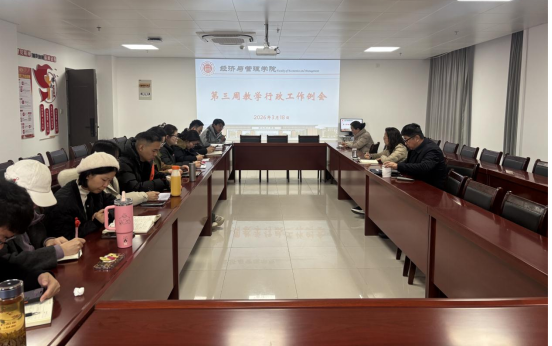 为扎实推进本学期行政工作,梳理难点、优化流程、凝聚合力,437必赢会员中心于2026年3月18日上午在行政楼725会议室召开行政工作例会。会议由吴玲院长主持,院长助理张珊、叶赵强,教学秘书李健,全体行政人员及学术带头人参会。