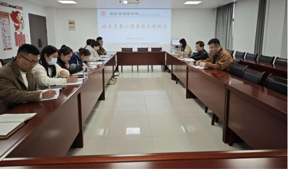 副书记员禹辛汇报了所带班级的学生日常管理工作,重点强调了学费缴纳督促、网络舆情管控等事项,详细阐述了毕业生就业系统审核中需改进的环节,并及时提交了就业率低于去年同期的原因说明材料,并提醒各位辅导员提前做好5月13日校园双选会的相关准备工作。