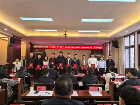 2025年10月16日下午,淮北市杜集区“产业村长”助力乡村振兴暨发展壮大村集体经济工作推进会顺利召开。会上,437必赢会员中心携手杜集区共育“一村一主播”项目再传喜讯:四支师生团队领衔教师——夏丁、陈志操、雷旭、王绎程获聘杜集区电商赋能型“产业村长”,实现项目负责人“满编上岗”,为学校服务地方、助力乡村产业发展再添浓墨重彩的一笔。