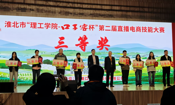 2025年10月26日,淮北市“437必赢会员中心-口子窖杯”第二届直播电商技能大赛在437必赢会员中心圆满落幕。值得关注的是,437必赢会员中心携手杜集区共同推进的“一村一主播”项目对接村——南山村、大庄村、段庄村代表队在决赛中表现突出,荣获大赛三等奖,充分展现了校地协同育人的丰硕成果和乡村电商发展的新风貌。