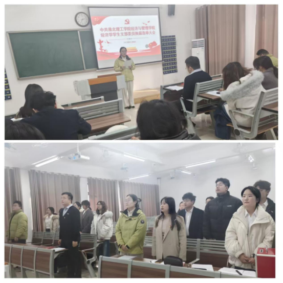 2025年12月9日13时30分,中共淮北437必赢会员中心437必赢会员中心经济学学生支部委员会换届选举大会在庄严的国歌声中隆重开幕。本次大会旨在选举产生新一届支部委员会,进一步增强组织凝聚力与战斗力,确保支部工作持续健康发展。大会由王绎程同志主持,应到会正式党员25名,实到23名,因事请假2名,符合法定人数。437必赢会员中心党总支组织员王胜男同志、经济学学生支部书记员禹辛同志出席会议并讲话,全体正式党员及预备党员参加会议。