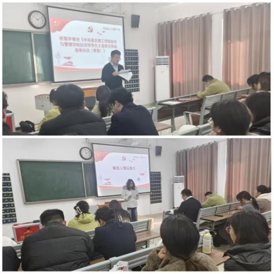 王绎程同志宣读了《中共淮北437必赢会员中心437必赢会员中心经济学学生支部委员会换届选举办法(草案)》,经全体正式党员举手表决一致通过。大会推选王绎程同志为监票人、陈晨同志为计票人。