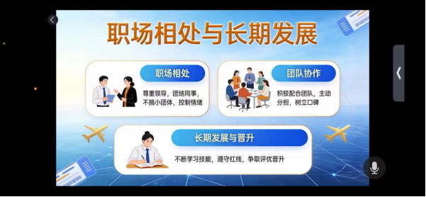 围绕入职全流程与长期职业发展,陈钰组长为同学们明确成长指引:入职初期快速适应岗位、严守规范、主动学习;职场中注重团结协作、融洽相处;长期发展持续精进技能、坚守职业底线,力争评优晋升、实现稳步成长。