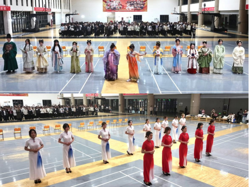 校礼仪队与汉服社联袂带来智韵古今礼仪展演,传统汉服风雅气韵与现代礼仪规范交相辉映,以古今对话演绎礼仪文化的传承与创新,为现场观众带来沉浸式传统文化体验。