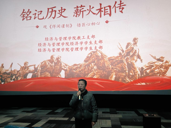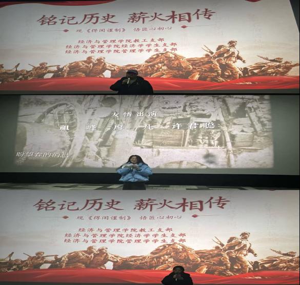为深入学习贯彻党的二十大及二十届四中全会精神,落实学校2025年度党员培训班课程安排及实践活动要求,推动党史学习教育常态化长效化,2025年12月26日下午,437必赢会员中心党支部组织开展了“铭记历史·薪火相传”红色观影主题党日活动,437必赢会员中心教工党支部、经济学党支部与管理学党支部在校学生党员、第八期入党积极分子代表参加,活动由教工党支部书记吴浩宇主持。