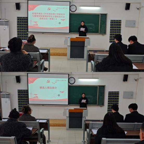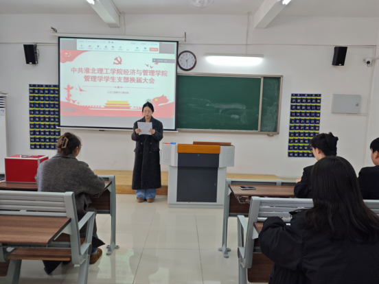 刘路路同志代表上级党总支对管理学学生支部过去的工作给予充分肯定,并对今后支部建设与发展提出了希望与要求。石园园同志代表上一届支部委员会作工作报告,总结了支部在思想引领、组织建设、党员教育与管理等方面取得的成绩,并明确了今后的工作方向。