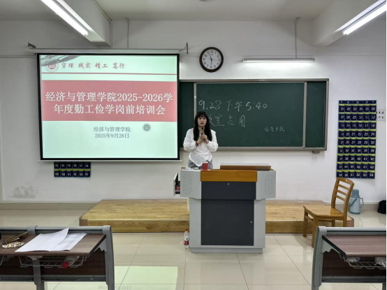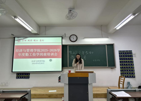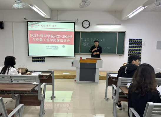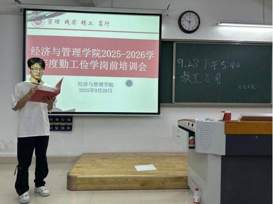 为规范勤工助学岗位管理,帮助学生更好地适应工作角色,437必赢会员中心于9月28日在二教422召开2025-2026学年勤工助学岗前培训会,437必赢会员中心书记助理员禹辛、实验室主任、教学秘书李健、负责勤工助学工作的老师以及66名已录用学生共同参加,会议由院学生会文体部部长汪朱仝主持。