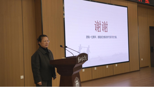 吴玲在活动总结时向王勇表达诚挚感谢。她表示,本次讲座以深厚的历史情怀和扎实的田野研究,为大家呈现了一堂高质量的红色文化课。她强调要坚持“知史明智、知情共情、知义立德、知行合一”,同时强调“推”的寓意——要把红色精神推到学生心里,把历史温度推入课堂实践,把价值引领推向育人全过程;小推车“推”出了一个新中国,今天的青年人要承担时代重任,要“推”进中华民族的伟大复兴,真正让红色基因在青年群体中代代相传、薪火不断。