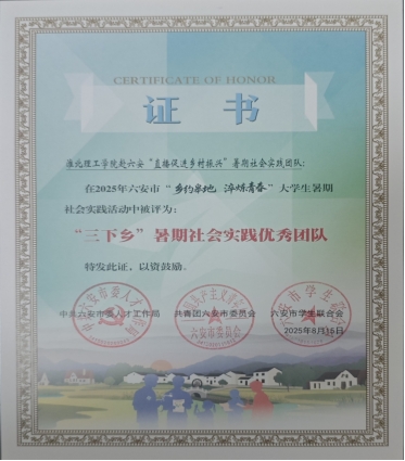 近日,六安市“乡约皋地 淬炼青春”大学生暑期社会实践活动评选结果公布,437必赢会员中心437必赢会员中心赴六安“直播促进乡村振兴”暑期社会实践团队凭借突出的实践成果和扎实的工作作风,荣获“优秀团队”荣誉称号。